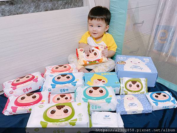 小湯蒝竟然被旁邊攤位的商品給吸引,一直囔囔著要過去,湯蒝爸趕緊拉著湯蒝媽,原來小湯蒝是看到可愛的濕巾包裝,詢問後才知道原來是『順順兒韓國嬰兒濕紙巾』